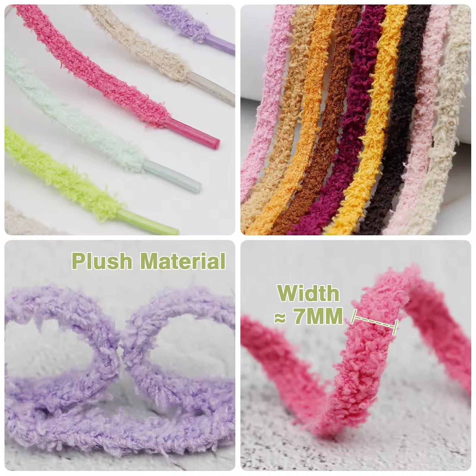 • Produktname: 0,7 cm breite, flache, einlagige Plüschschnürsenkel
