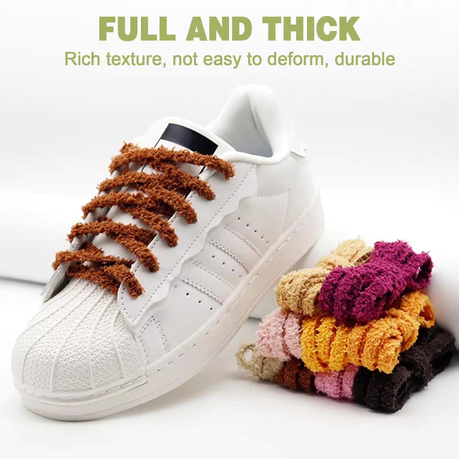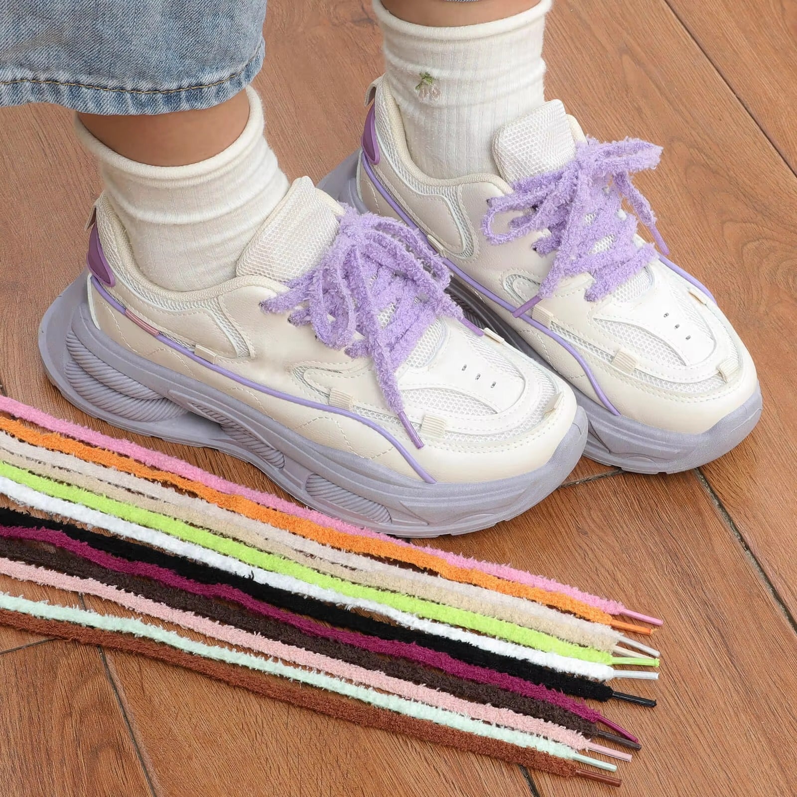 Verwandeln Sie Ihre Sneaker mit diesen ultra weichen, flauschigen Schnürsenkeln in ein stylisches Accessoire.