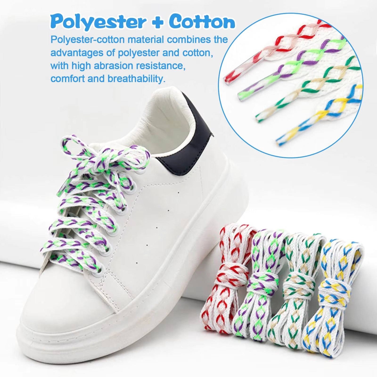 Unsere 1 cm breiten, flachen Sportschnürsenkel sind die perfekte Ergänzung für Sneaker und Freizeitschuhe. Hergestellt aus einer hochwertigen Baumwoll-Polyester-Mischung, vereinen diese Schnürsenkel Weichheit und Strapazierfähigkeit und bieten Ihnen langanhaltenden Tragekomfort ohne Versteifung oder Ausfransen. Mit diesen Unisex-Schnürsenkeln können Sie alte Schuhe aufpeppen, neue Paare individuell gestalten oder Ihren Look mühelos an Ihre Stimmung und Ihr Outfit anpassen. Ob Sneaker, Boots, Canvas-Schuhe oder Boardschuhe – diese Schnürsenkel verleihen Ihren Schuhen Persönlichkeit, ohne sie zu dominieren. Diese Premium-Schnürsenkel sind ideal für alle, die Wert auf Mode und Funktionalität legen. Von Sportschuhen über Lederschuhe bis hin zu Wanderschuhen bieten sie ein zuverlässiges und stylisches Upgrade, das auch bei häufigem Tragen und einem aktiven Lebensstil lange hält.