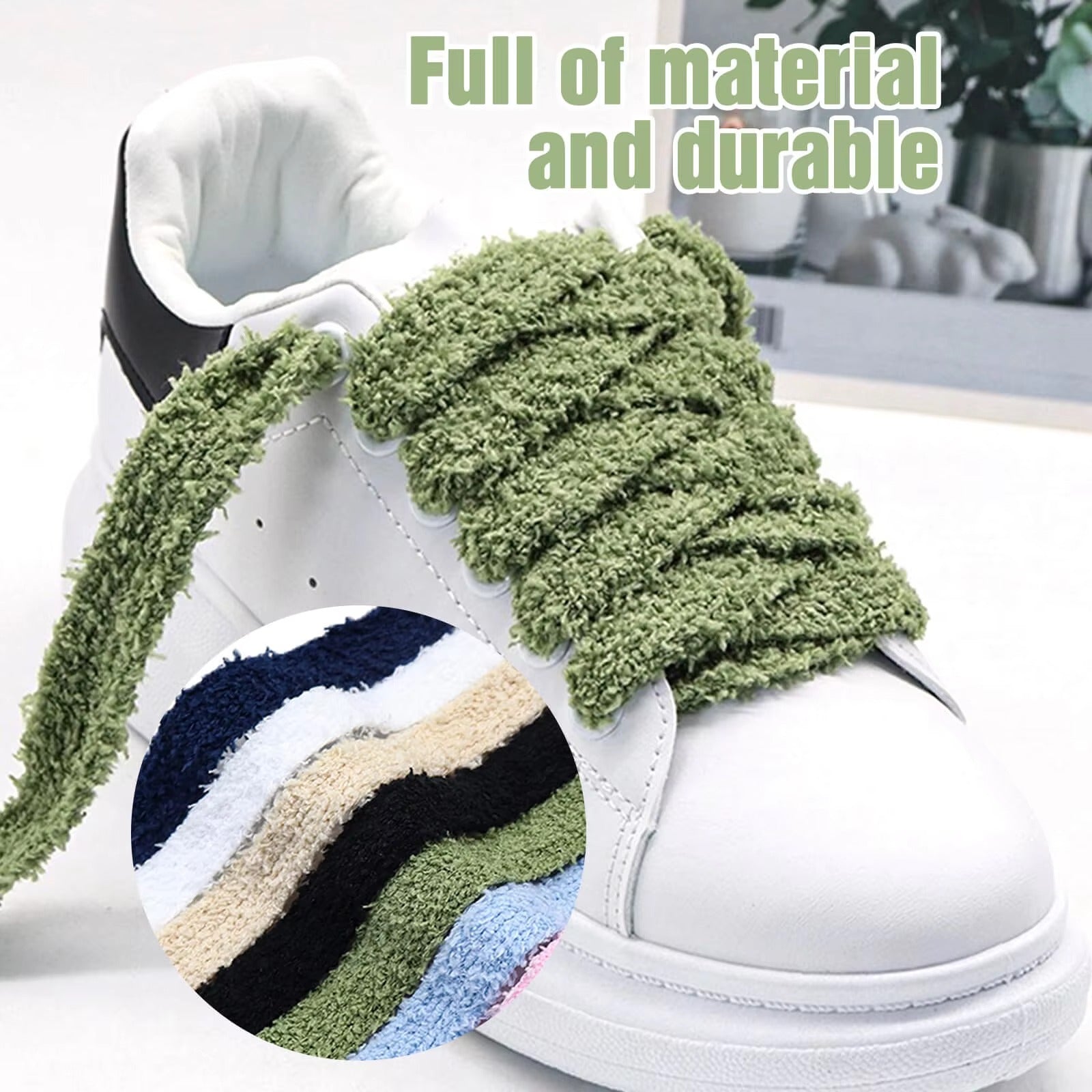 Diese 2,2 cm breiten, flachen Plüschschnürsenkel aus hochwertigem Polyesterplüsch fühlen sich flauschig und weich an und verleihen Ihren Schuhen einen einzigartigen Lagenlook. Das dichte, aber dennoch elastische Material sorgt für sicheren Halt, ohne einzuengen oder zu steif zu wirken. Die farbenfrohen Unisex-Schnürsenkel passen perfekt zu Sneakers, Canvas-Schuhen, Stiefeln, Wanderschuhen, Lederschuhen und sogar zu modischen Freizeitschuhen. Sie fransen nicht aus und behalten ihre Farbe dauerhaft. Ob Sie Ihre alten Sneakers aufpeppen, ein neues Paar individuell gestalten oder die Schnürsenkel kreativ als Geschenkanhänger oder Accessoire verwenden – diese Plüschschnürsenkel bieten Komfort, Vielseitigkeit und einen unverwechselbaren Stil bis ins kleinste Detail.