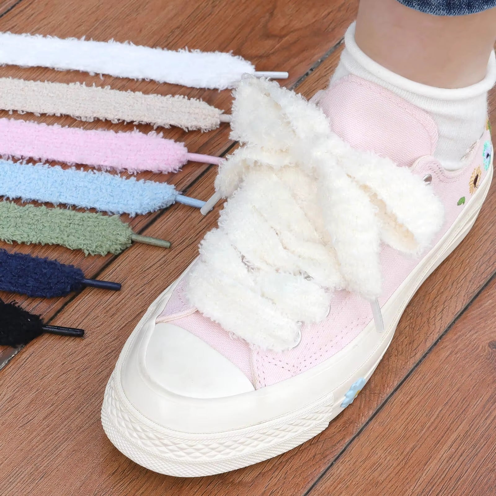 • Produktname: 2,2 cm breite, flache, einlagige Plüschschnürsenkel