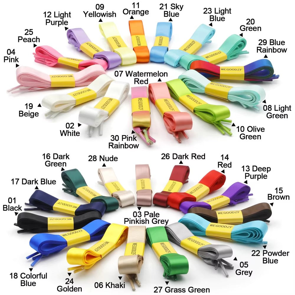 Die flachen Satinbänder fühlen sich weich, glatt und seidig an und gleiten mühelos durch die Ösen. Die breite Form sorgt für einen modernen Look und verleiht Sneakern, Wedges, Lederschuhen, Stiefeln und sogar High Heels eine individuelle Note. Ob Sie Ihre Lieblingssneaker aufpeppen, Ihr Festival-Outfit stylen oder Schuhen für besondere Anlässe einen verspielten Akzent verleihen möchten – mit diesen farbenfrohen Schnürsenkeln gelingt es mühelos. Das einfarbige Design passt sowohl zu minimalistischen als auch zu auffälligen Schuhen, während das strapazierfähige Polyestermaterial für lange Haltbarkeit ohne Ausfransen sorgt. Die flachen Schnürsenkel eignen sich gleichermaßen für Damen- und Unisex-Sneaker und sind ideal für alle, die Mode und Funktion lieben.