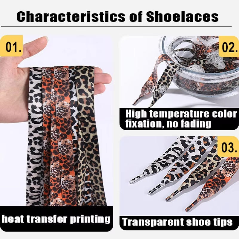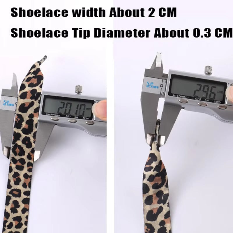 Diese glatten und seidigen Schnürsenkel mit Leopardenmuster verwandeln gewöhnliche Schuhe in stylische Hingucker. Hergestellt aus hochwertigem Polyester, bieten sie ein weiches Satin-Gefühl mit dezentem Glanz, das elegant wirkt und gleichzeitig strapazierfähig für den täglichen Gebrauch ist. Die großzügige Breite von 2 cm erzeugt einen bandartigen Look, der Sneaker, Stiefel, Canvas-Schuhe und sogar High Heels mit einer einzigartigen Mischung aus sportlich und schick aufwertet. Diese vielseitigen Schnürsenkel können auch als Kordelzug für Hoodies, Hosenbund, Hosen oder Kappen verwendet werden – perfekt für alle, die gerne selbst kreativ werden. Die bedruckten Schnürsenkel eignen sich für Damen- und Unisex-Styling und sind ideal für Freizeitkleidung, Sport oder Streetstyle-Outfits, bei denen Persönlichkeit zählt. Diese Satin-Schnürsenkel bieten Komfort, Langlebigkeit und ein herausragendes Design in einem einfachen Upgrade.