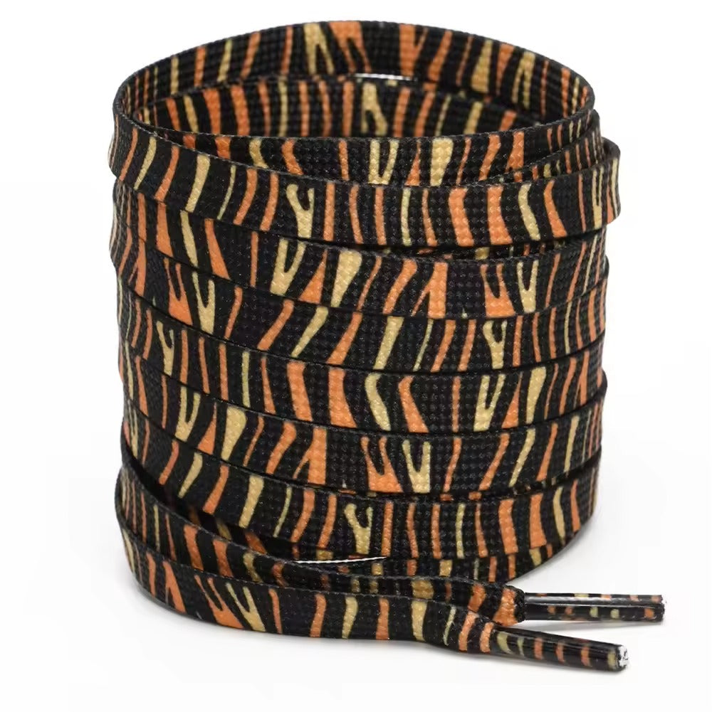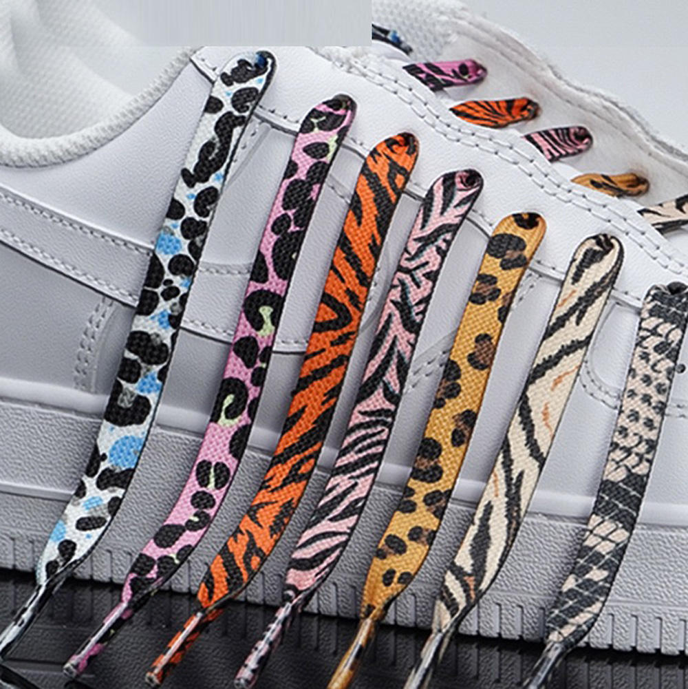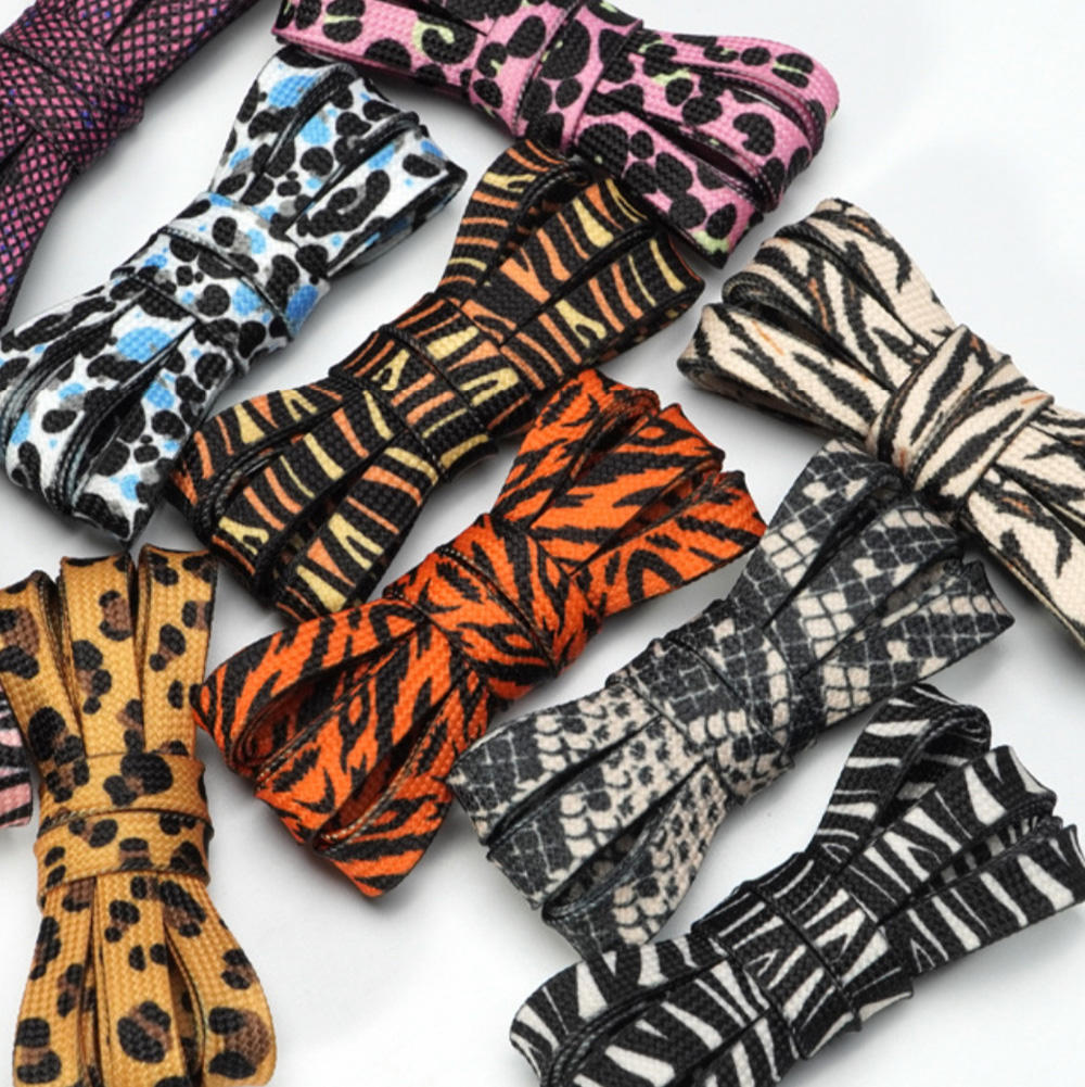 Diese flachen Schnürsenkel im Tierprint sind perfekt für alle, die Wert auf ausdrucksstarke und auffällige Details legen. Hergestellt aus hochwertigem Polyester, bieten sie Langlebigkeit, Komfort und eine glatte, edle Textur. Die lebendigen Tier- und Leopardenmuster verleihen Sneakern und Freizeitschuhen einen modischen Touch und werten sie im Handumdrehen auf. Dank farbechter Drucke bleiben die Farben auch bei täglichem Tragen leuchtend, ohne zu verblassen oder abzufärben. Die robusten Kunststoffspitzen ermöglichen ein einfaches Einfädeln. Diese vielseitigen Schnürsenkel eignen sich auch hervorragend als Kordelzug für Hoodies oder als modisches Accessoire und bieten die perfekte Balance aus Kreativität, Robustheit und modernem Design.