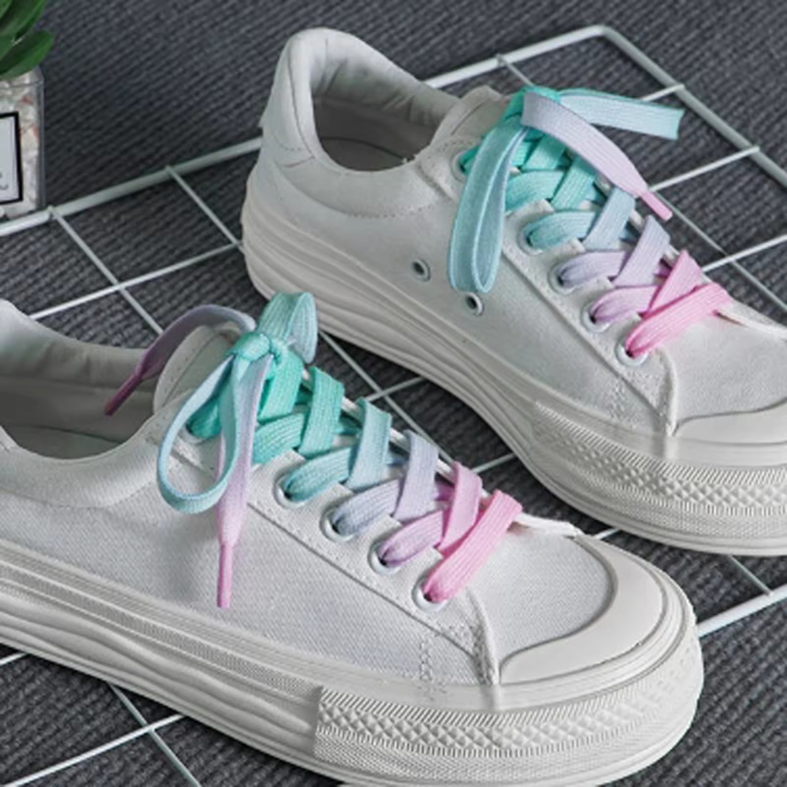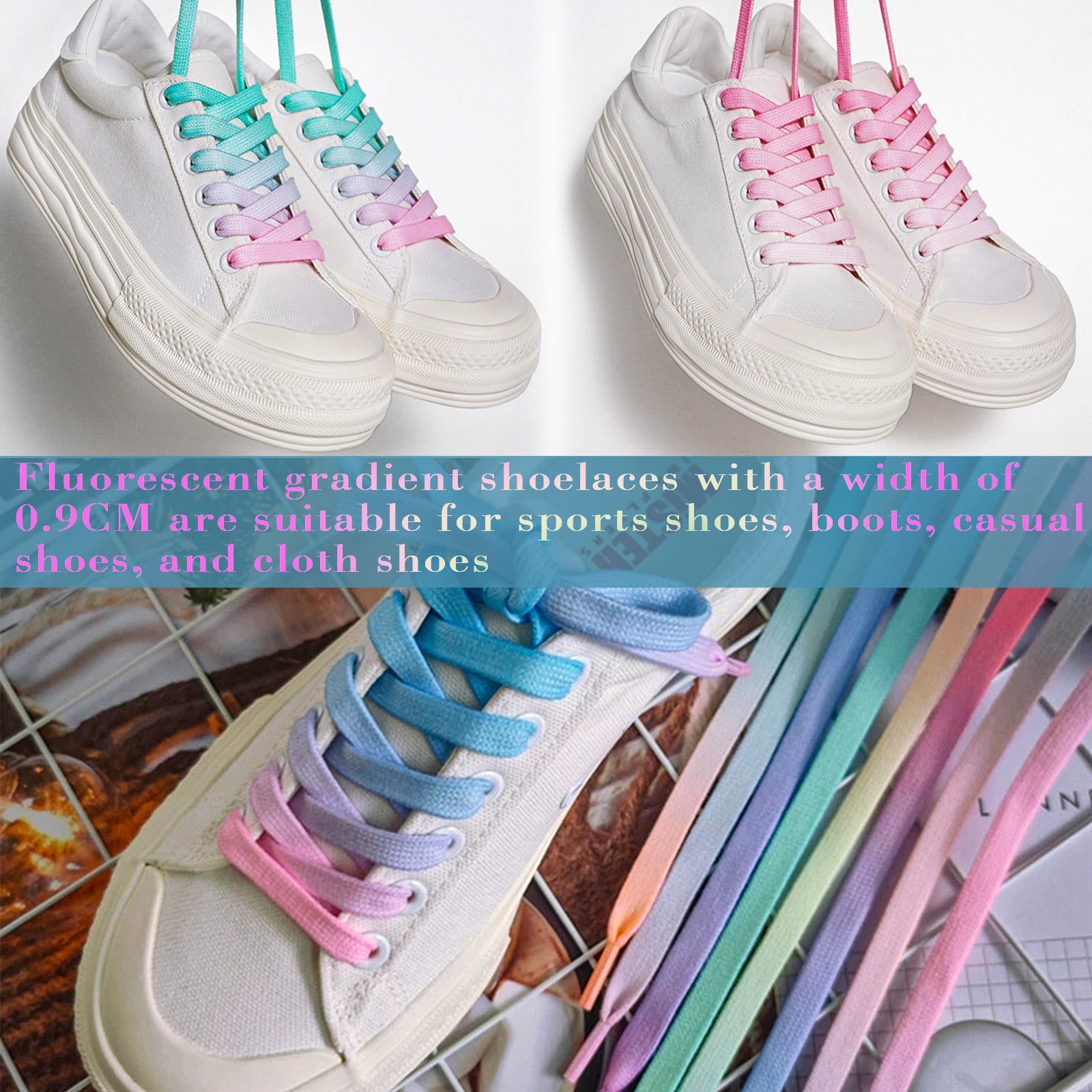 Flache, farbenfrohe Schnürsenkel für Sportschuhe mit Farbverlauf.jpg