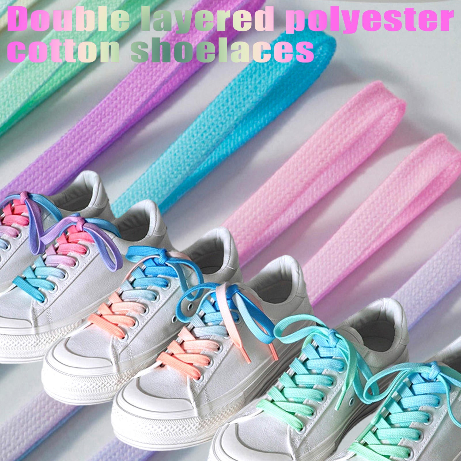 Diese hochwertigen, doppellagigen Baumwollschnürsenkel bringen Farbe in jeden Schritt. Hergestellt aus strapazierfähigem Polyester mit weichem Baumwollgriff, bieten diese 0,9 cm breiten, flachen Schnürsenkel Komfort, Stil und Langlebigkeit. Dank ihrer doppellagigen Konstruktion bleiben sie sicher gebunden und fransen nicht aus. Das auffällige Farbverlaufsdesign verleiht jedem Schuh einen modernen, sportlichen Touch. Ob Sportschuhe, Wanderschuhe, Sneaker oder Stoffschuhe – mit diesen Schnürsenkeln heben Sie sich von der Masse ab, egal ob in der Stadt, im Fitnessstudio oder auf dem Trail. Sie vereinen Funktion und Style perfekt für alle, die ihre Schuhe im Alltag aufwerten möchten. Leicht, farbenfroh und robust – diese Schnürsenkel sind das ideale Accessoire für mühelosen Style und optimale Performance.