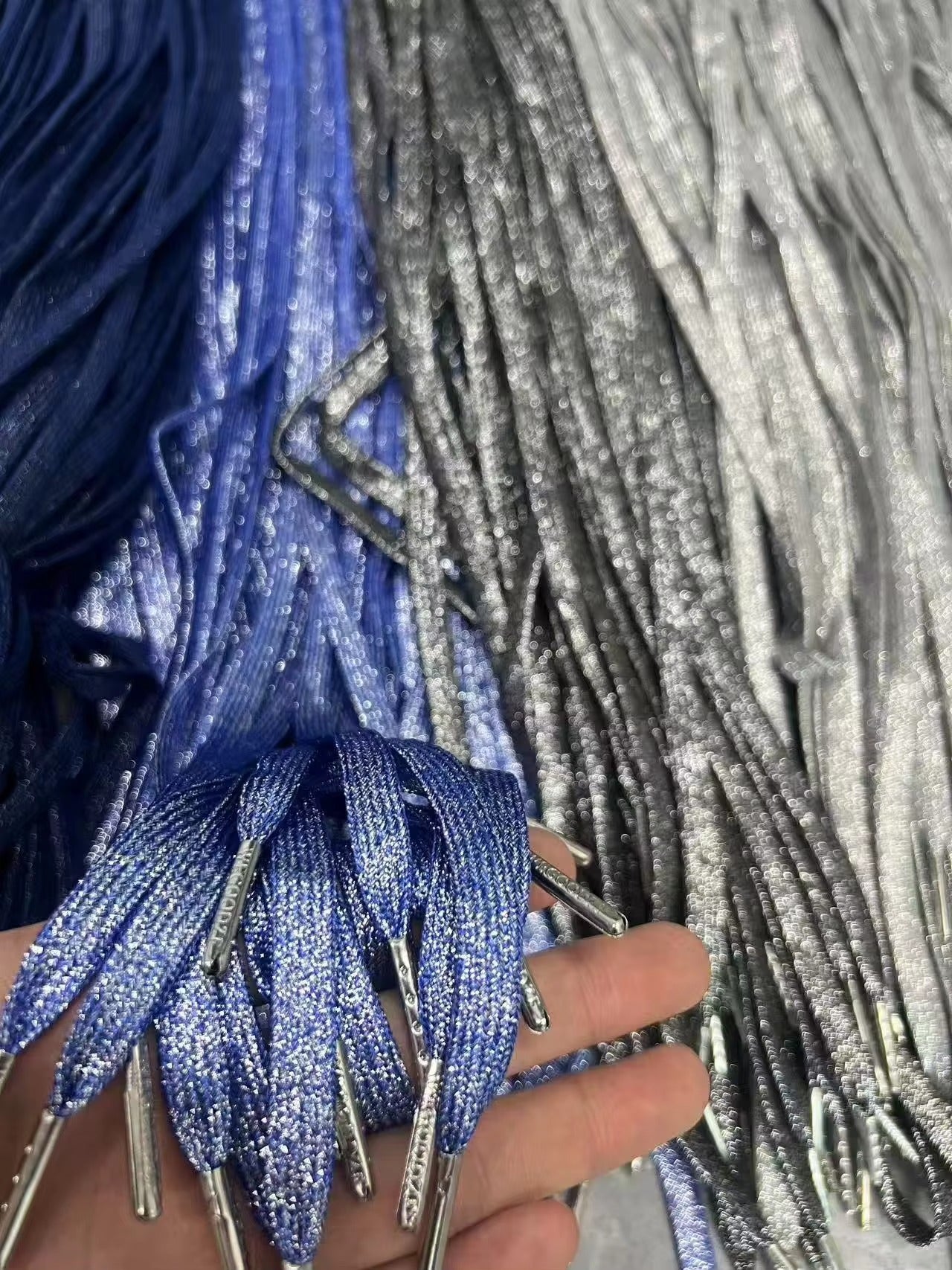 flache glitzernde, glänzende, metallische Schnürsenkel für Freizeitschuhe.jpg
