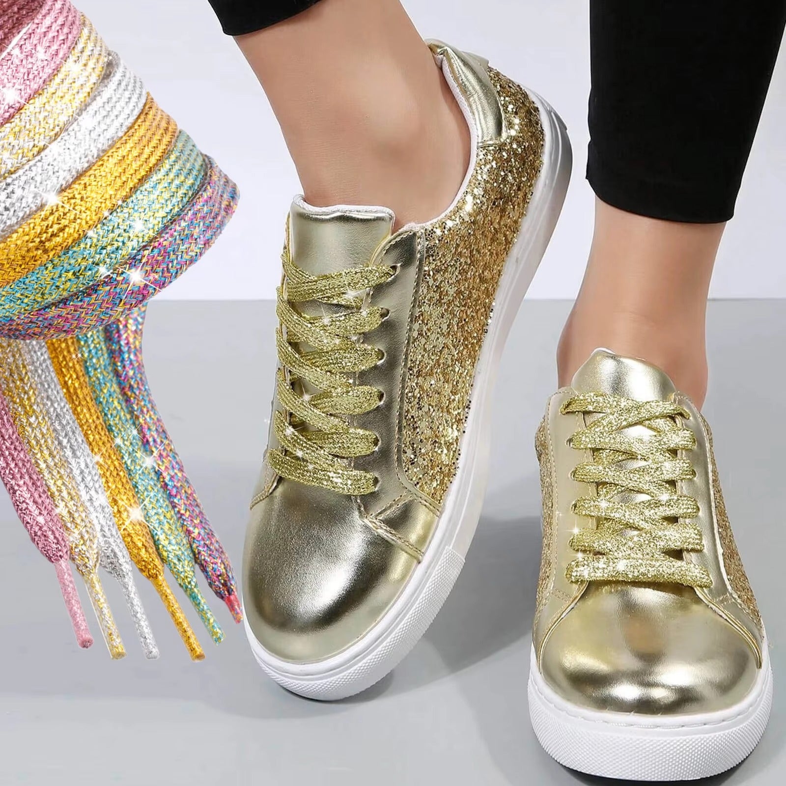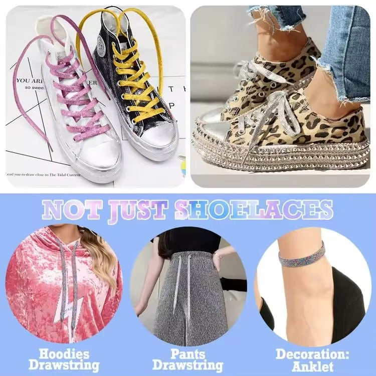 Flache Glitzernde metallisch glänzende Schnürsenkel für Freizeitschuhe